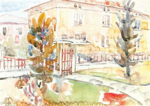 Giardino spoglio, 1973 – Acquarello su carta, cm 48 x 35