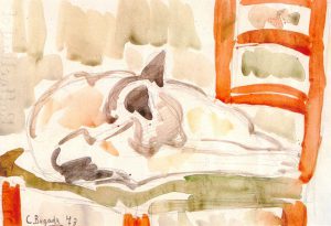 Il gatto, 1973 – Acquarello su carta, cm 24 x 34