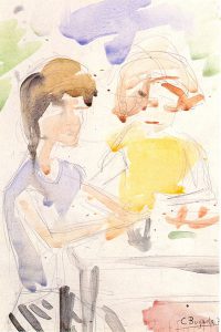 Silvia e Giuliana, 1973 – Acquarello su carta, cm 34 x 24