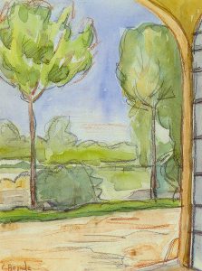 Dal portone della cascina, 1960 – Acquarello su carta, cm 32 x 23